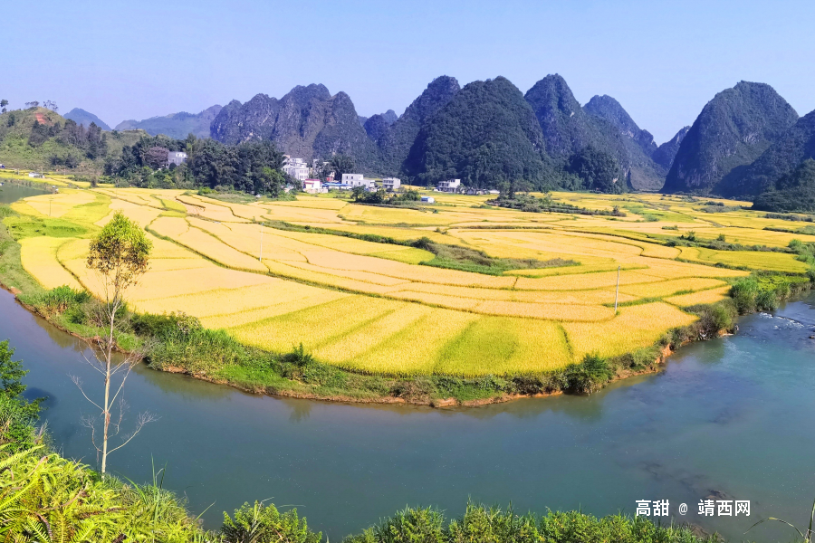 金秋十月,稻谷飘香,靖西乡村稻田一片金黄,田园风光让人着迷。