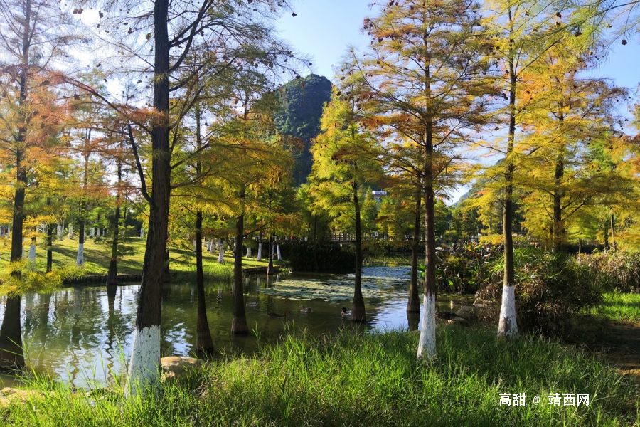 初冬时节,冷空气像是给龙潭湿地公园的水杉树叶子施了魔法,把叶子变成一片锈红色。色彩斑斓,景色醉美,引得游人驻足观赏,拍照留影。
